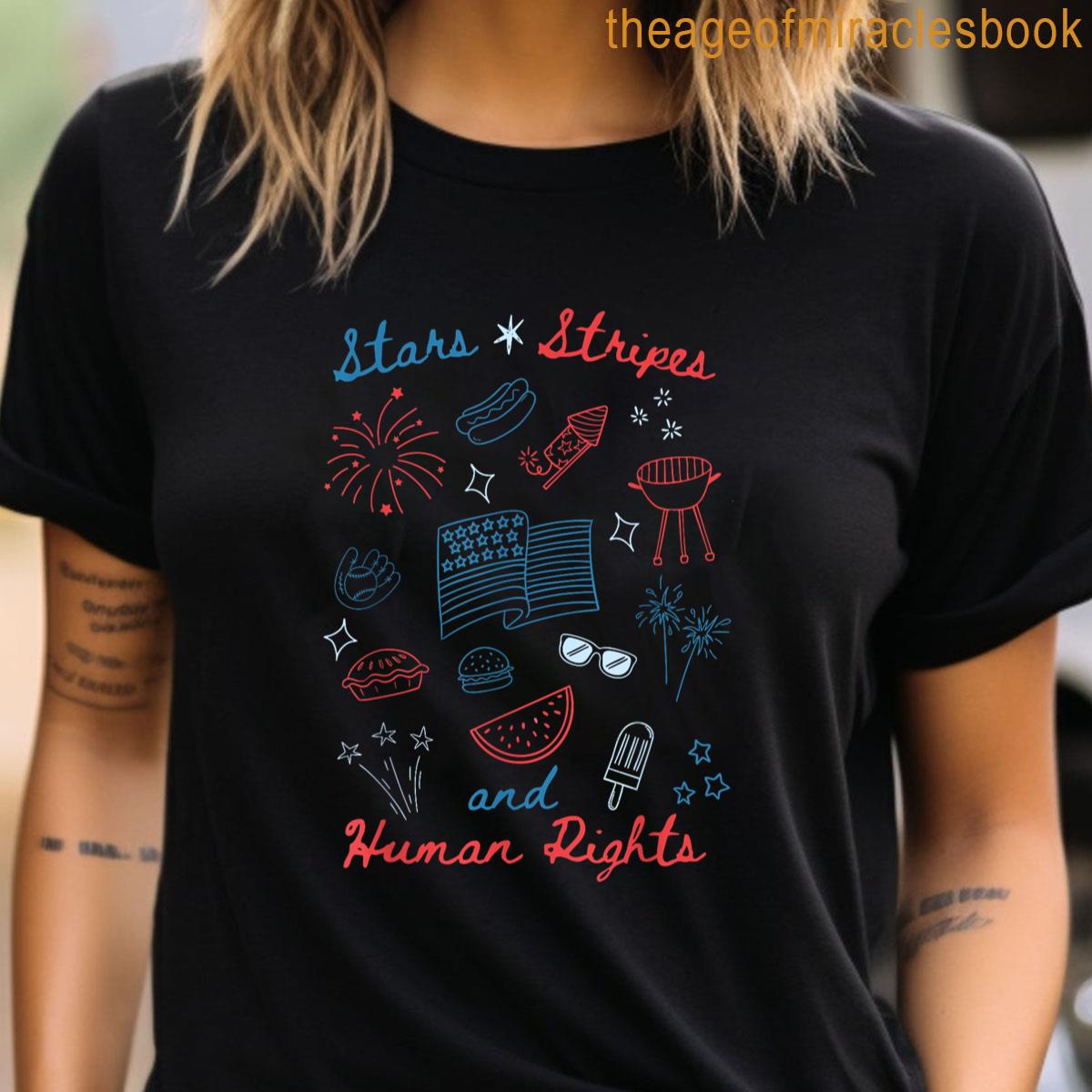 4th Of July Doodle Stars Stripes Human Rights Memorial Day T-shirt