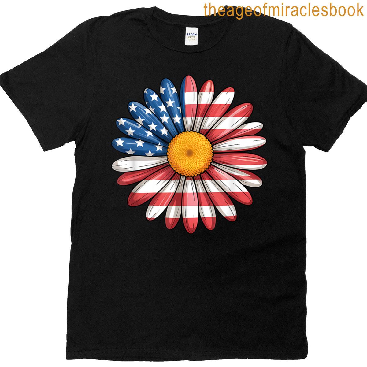4th Of July Floral American Flag Stars Stripes Women 2 Sided Premium T-shirt