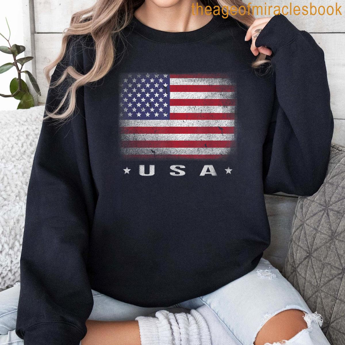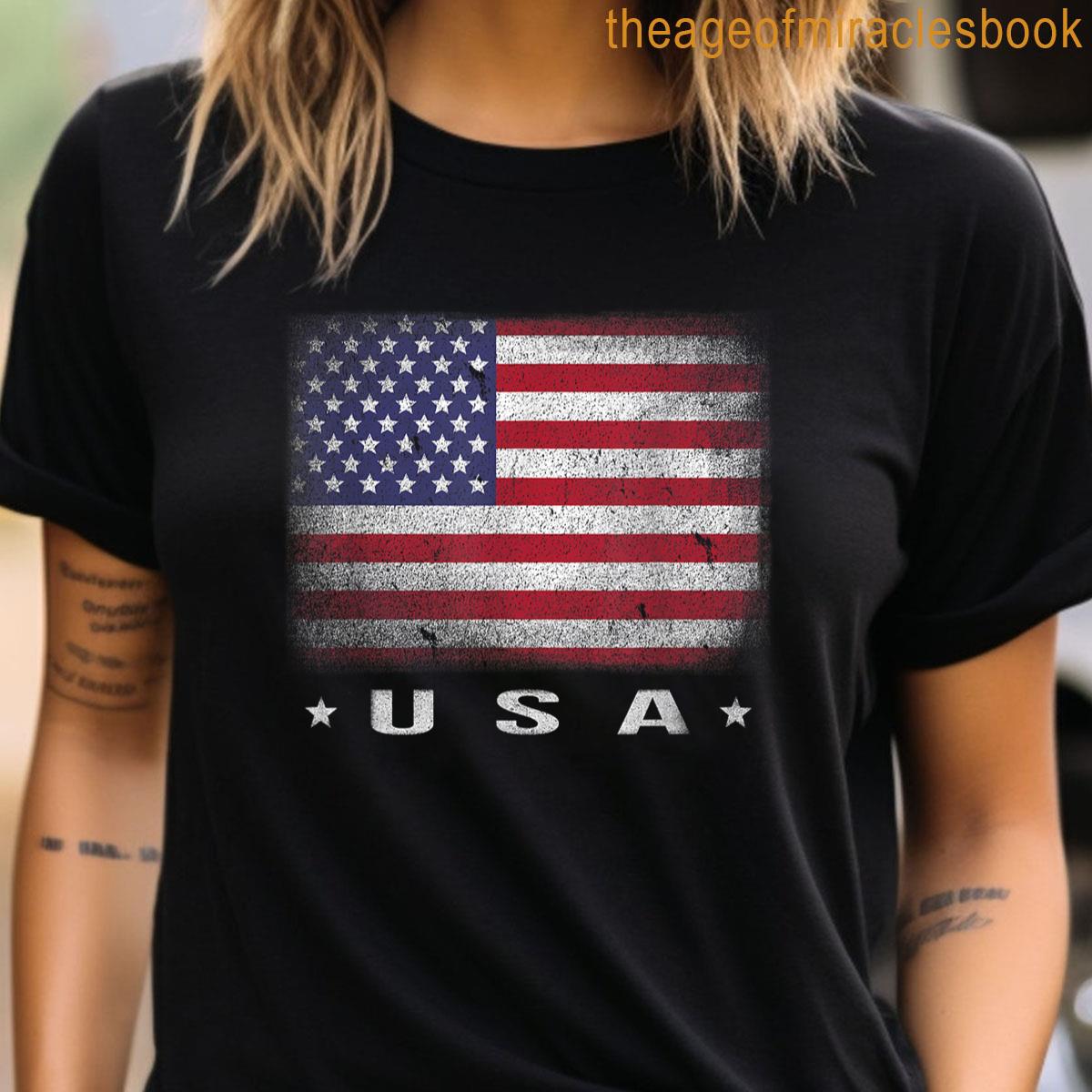 American Flag Usa July 4th White Blue Red Faded Stripe Star For Women Kids Men T-shirt