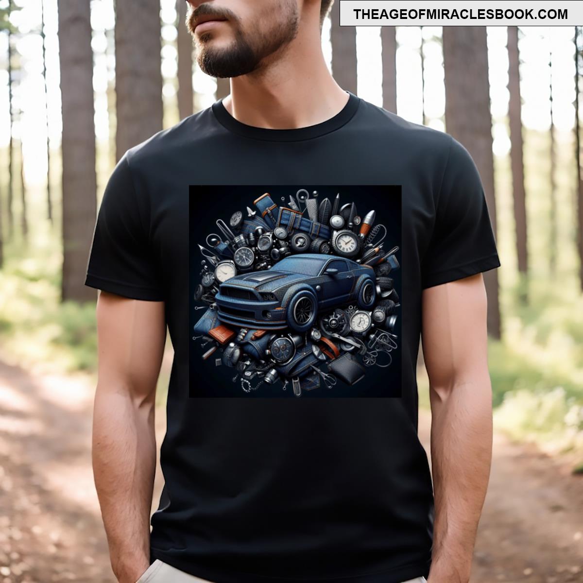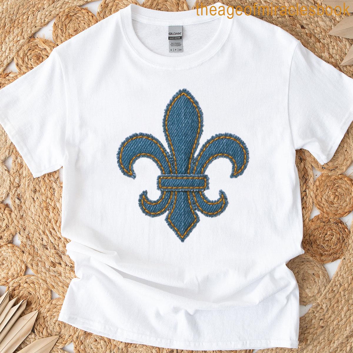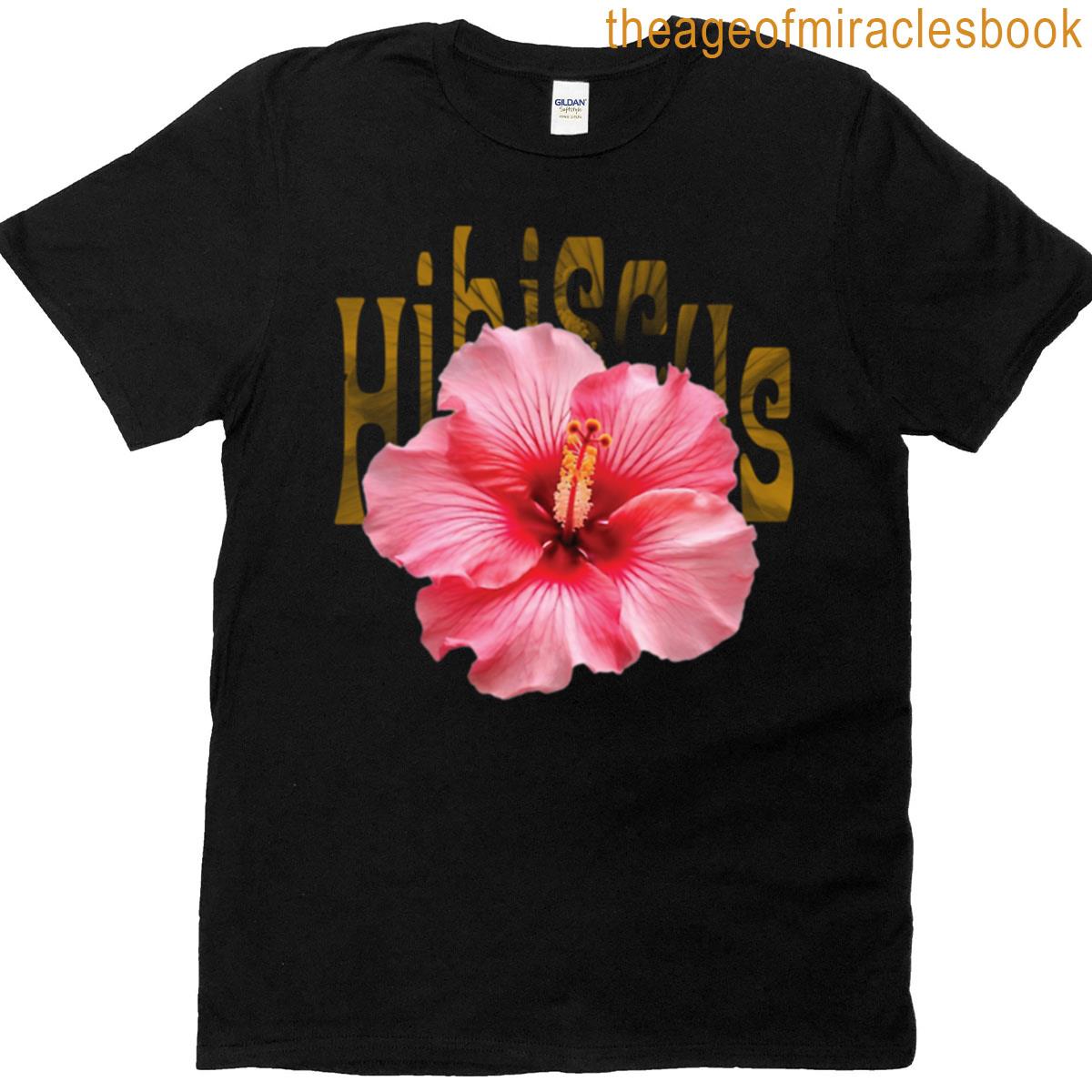 Blue Denim Hibiscus On Stripes Graphic T-shirt