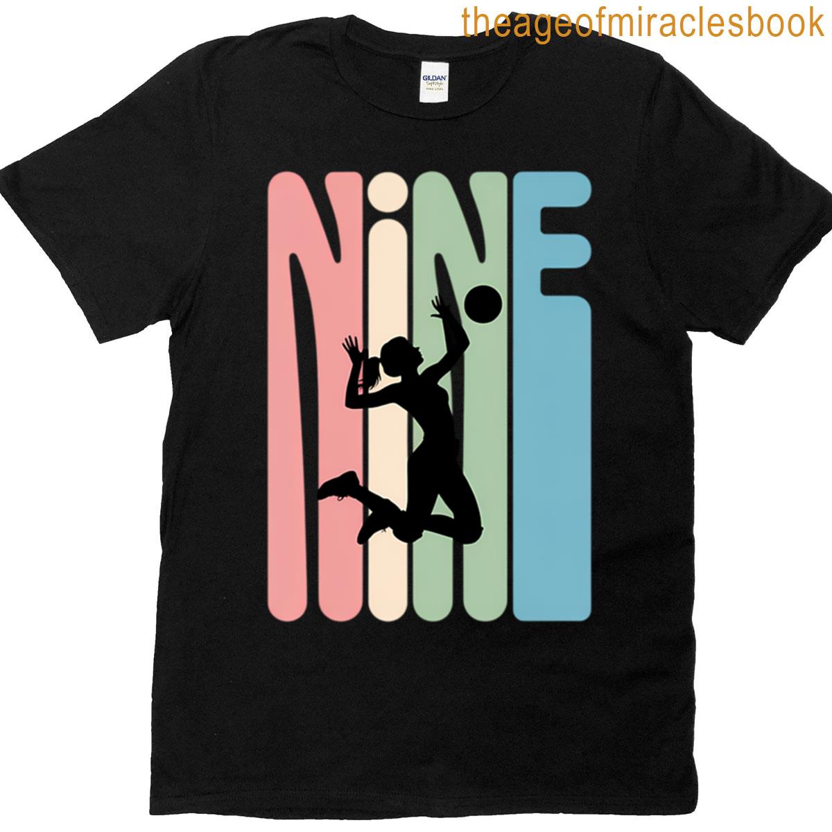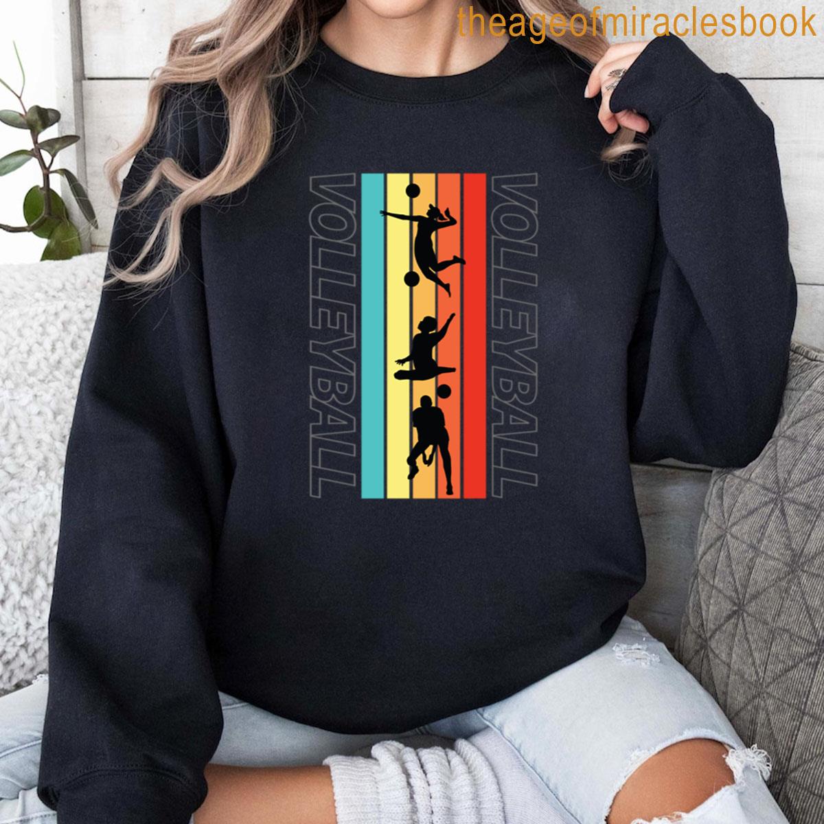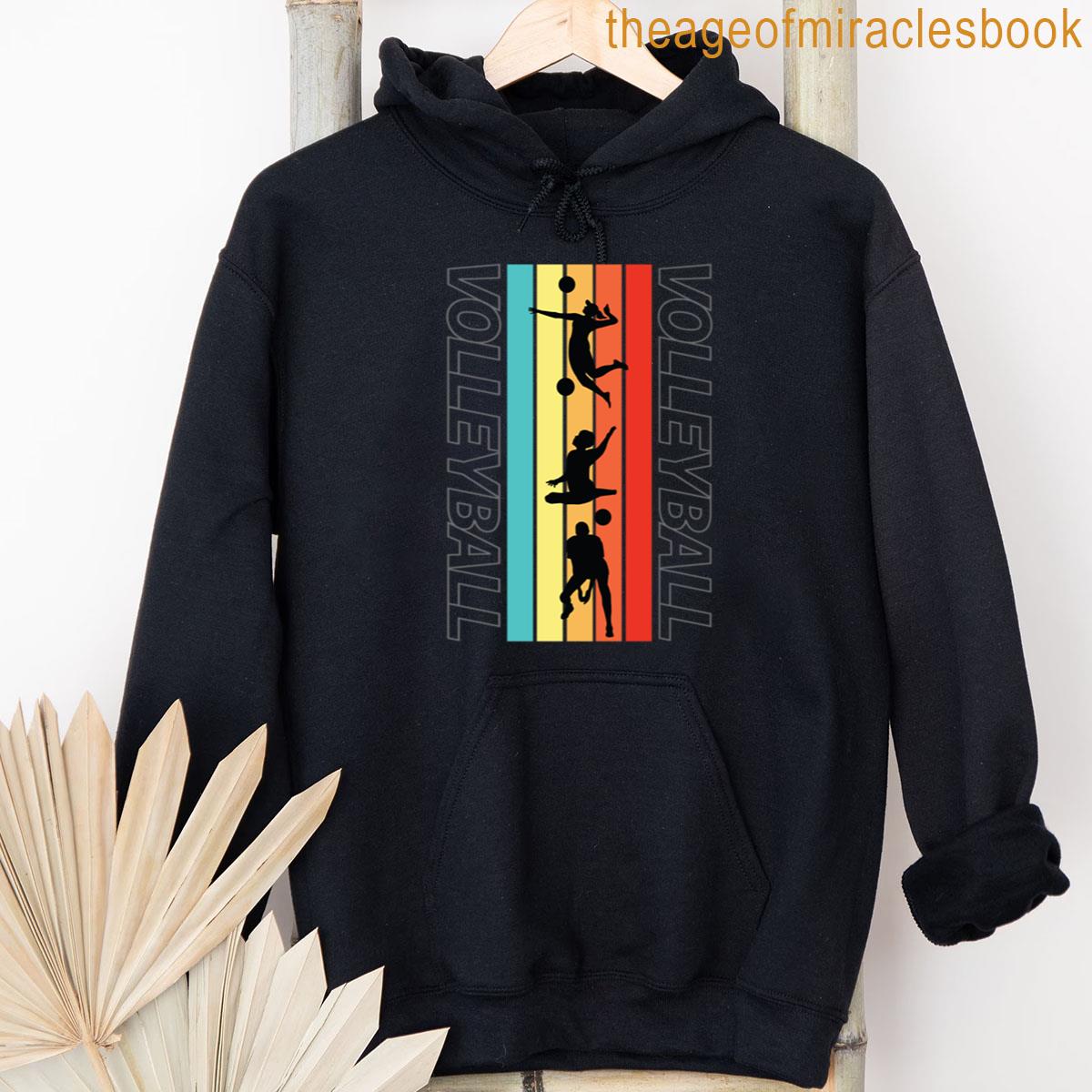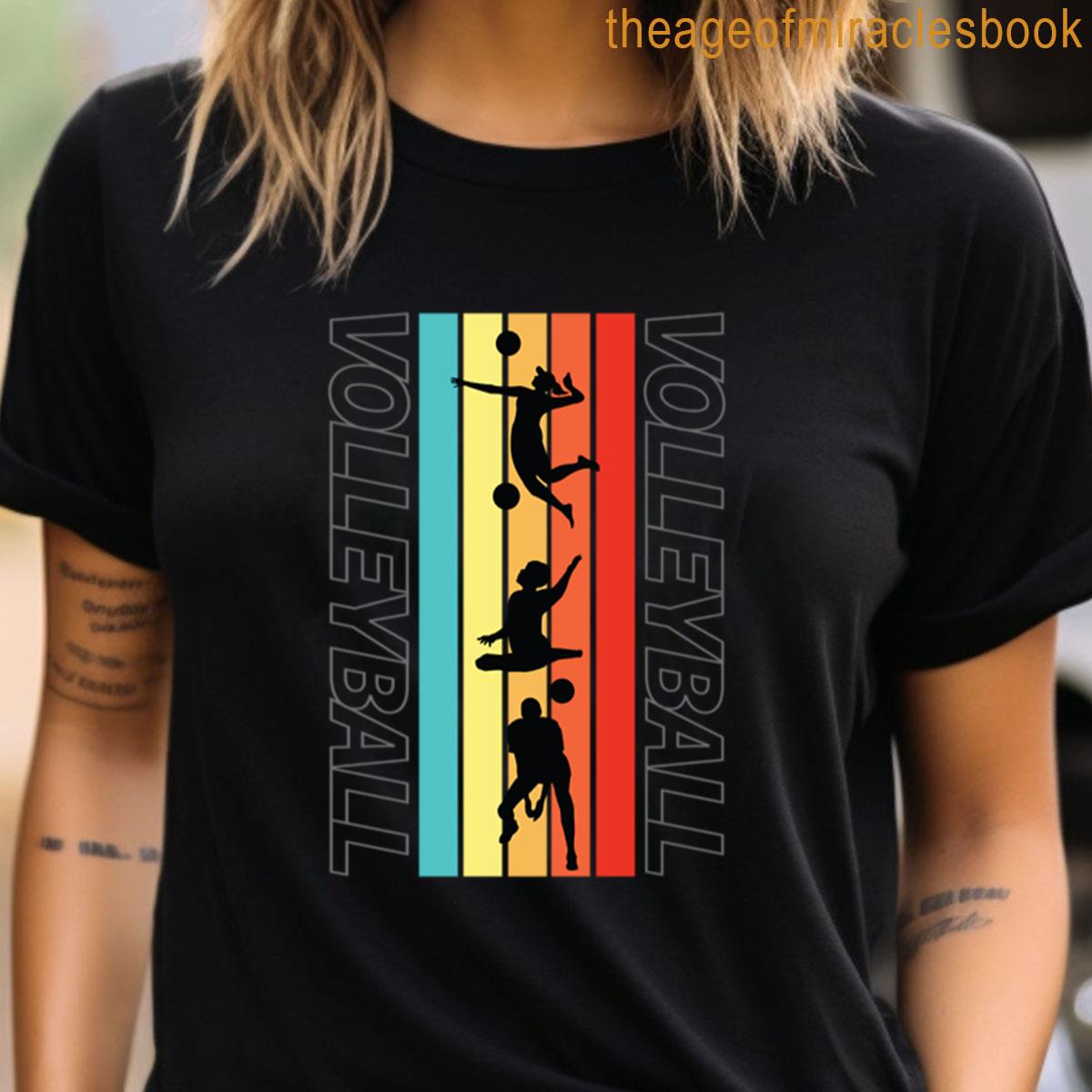 Bold Retro Abstract Multicolor Stripes With Volleyball Player Silhouettes T-shirt