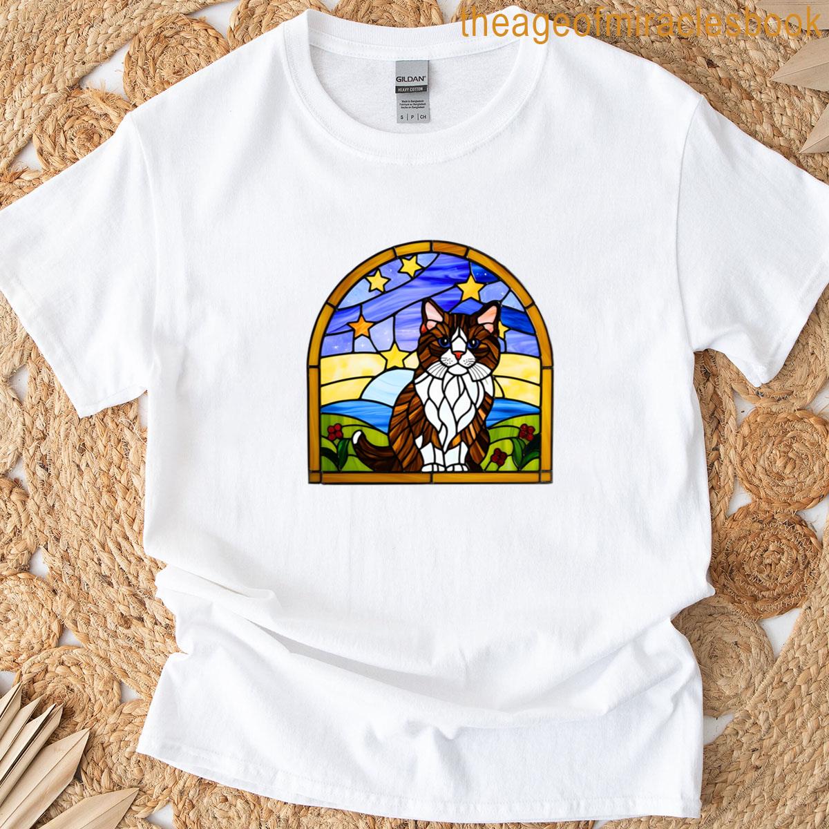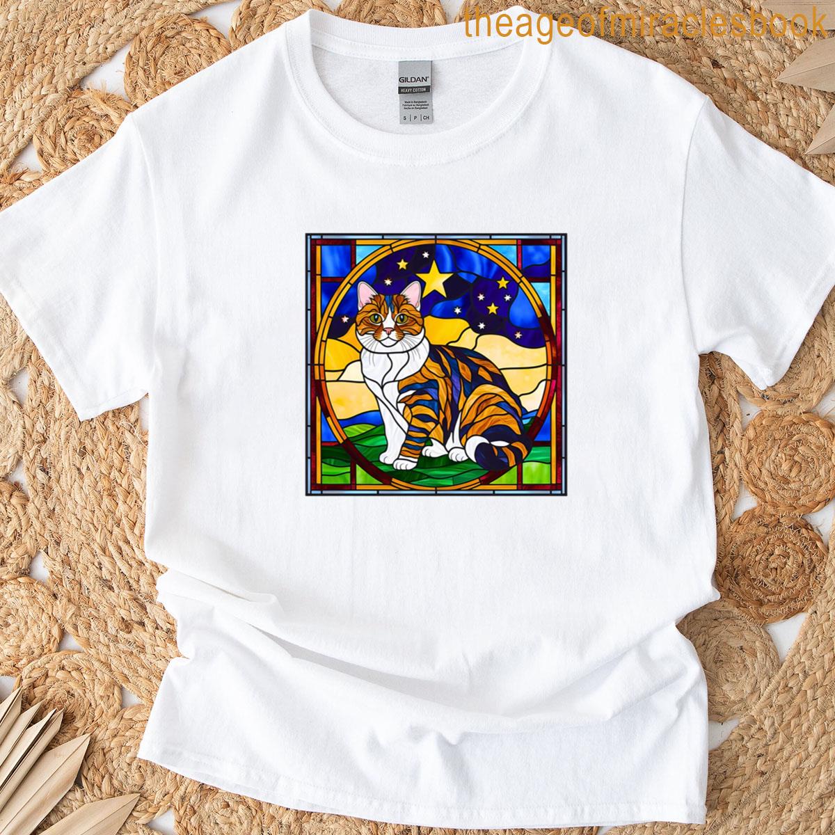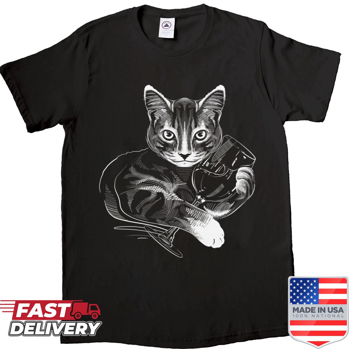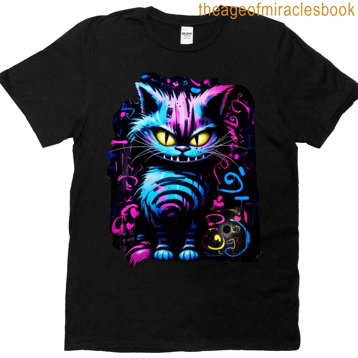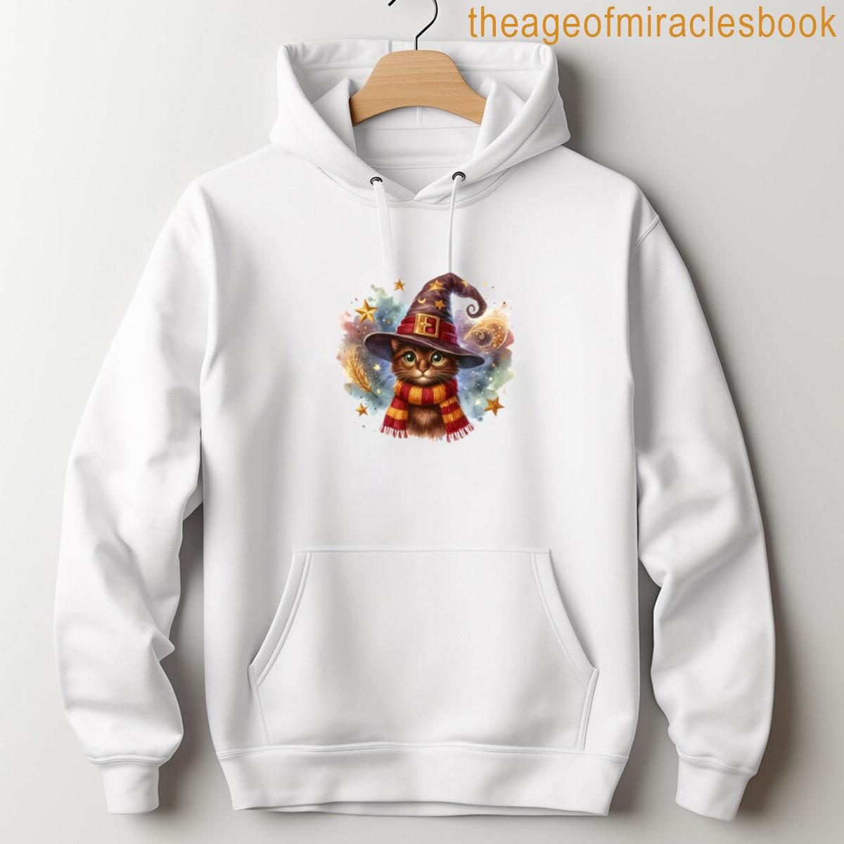 Brave Cat In Wizard Hat And Striped Scarf – Bold Feline Fantasy Art T-shirt