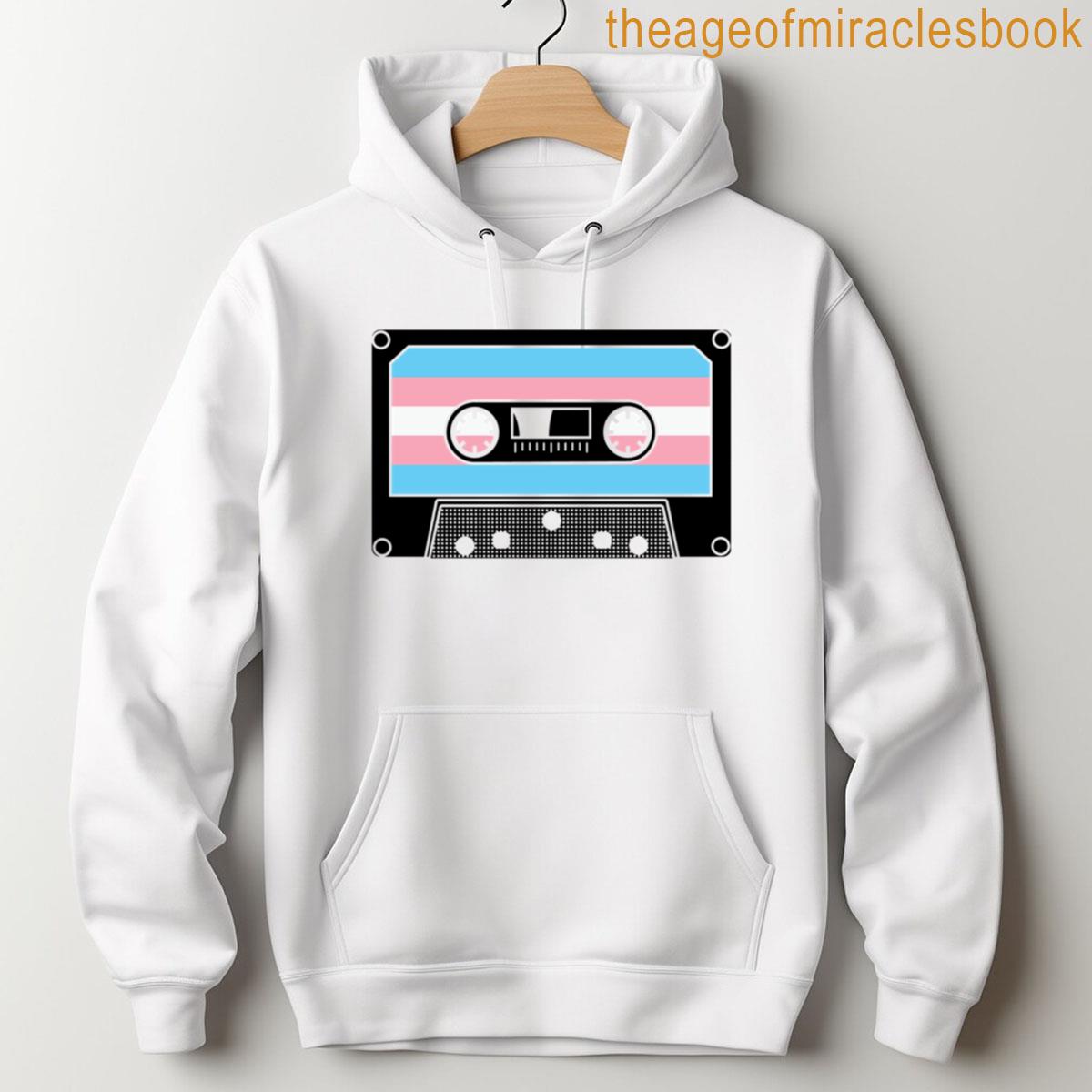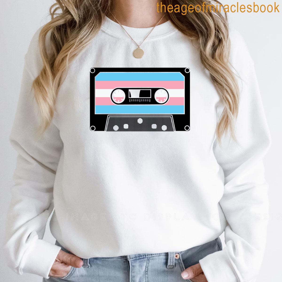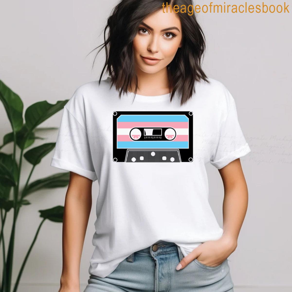 Flat Style Cassette Illustration Black Pastel Pink Light Blue Stripes T-shirt