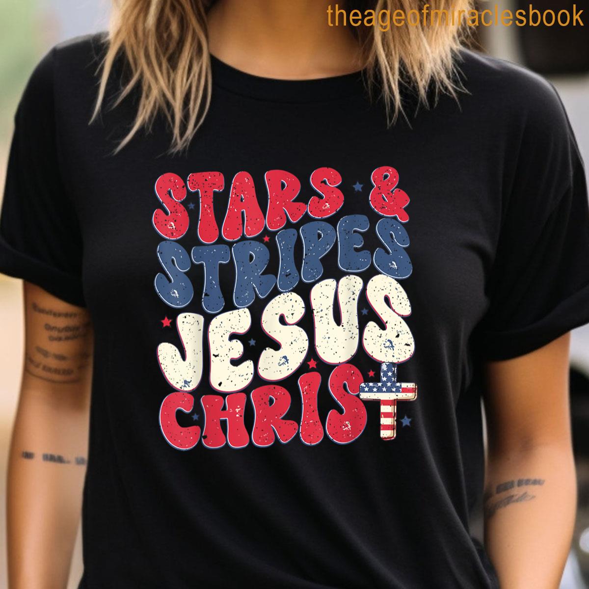 Funny Christian 4th Of July Stars Stripes Jesus Christ T-shirt