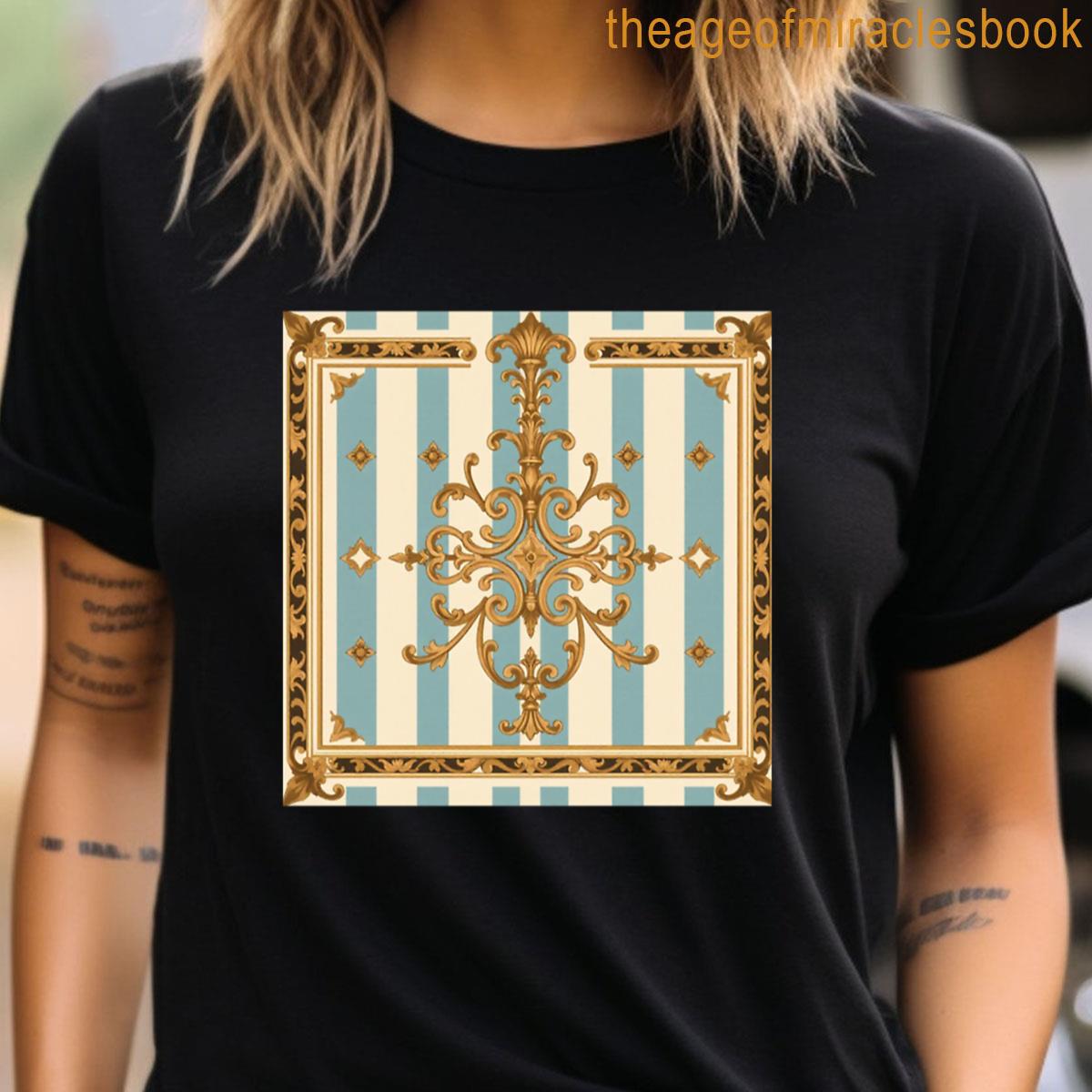 Ice Blue Alabaster Striped Gold Baroque T-shirt