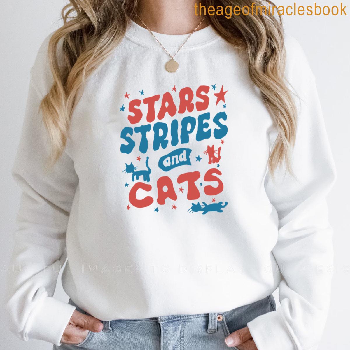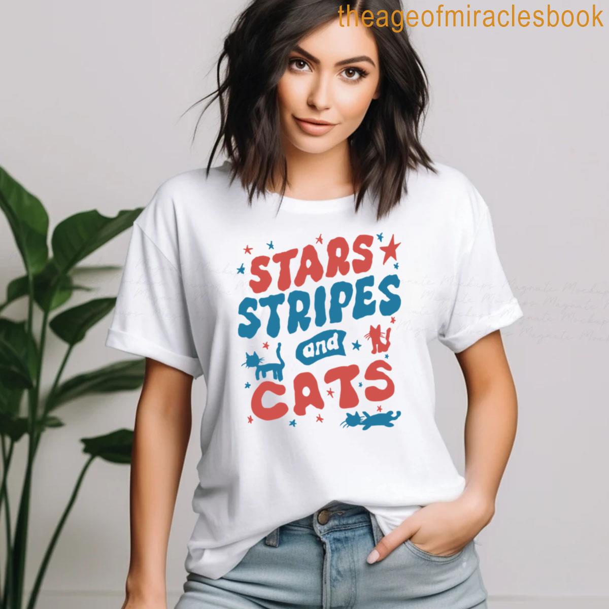 Jun-90 4th Of July Cat Lovers Cat Lady Stars Stripes And Cats Retro Fourth Of July T-shirt