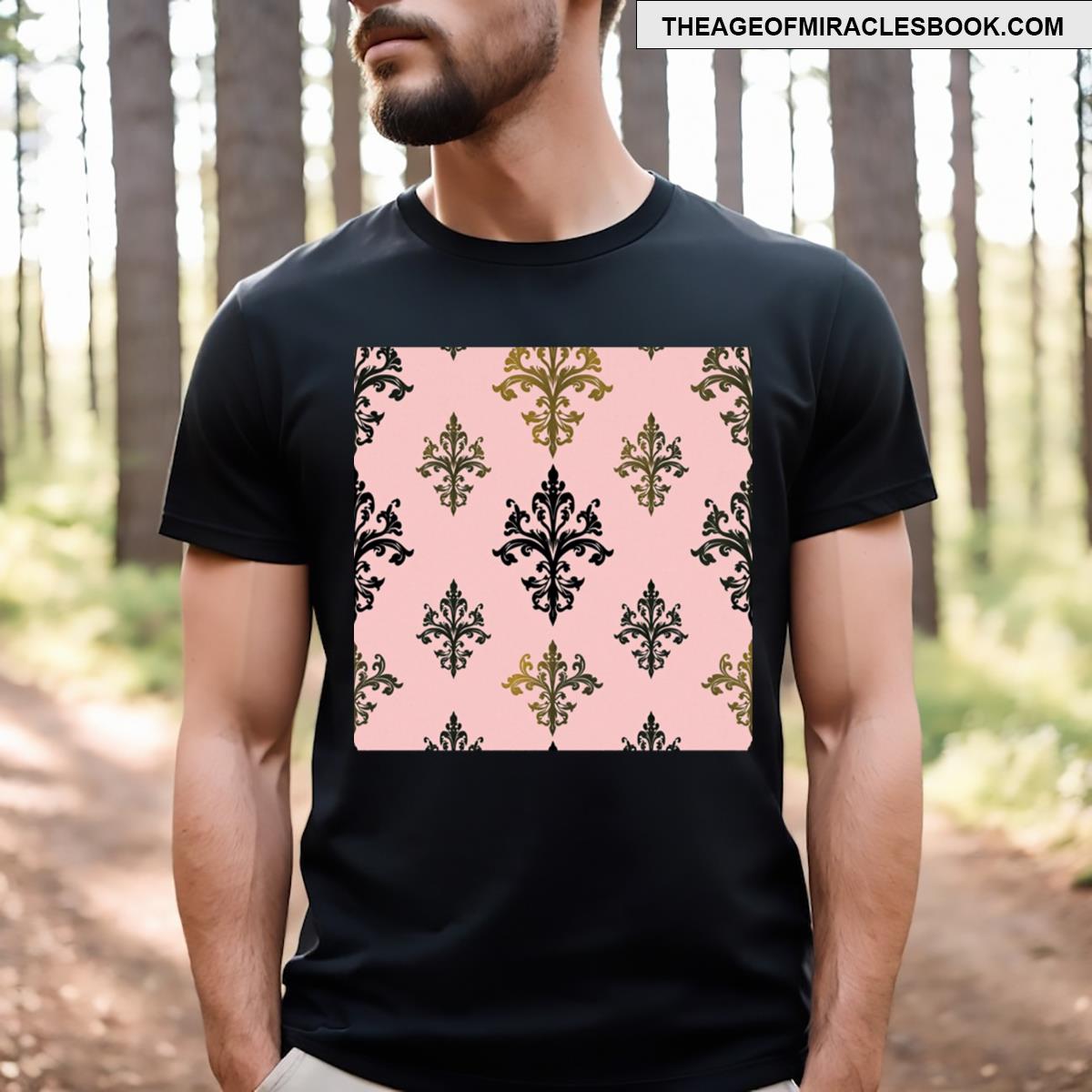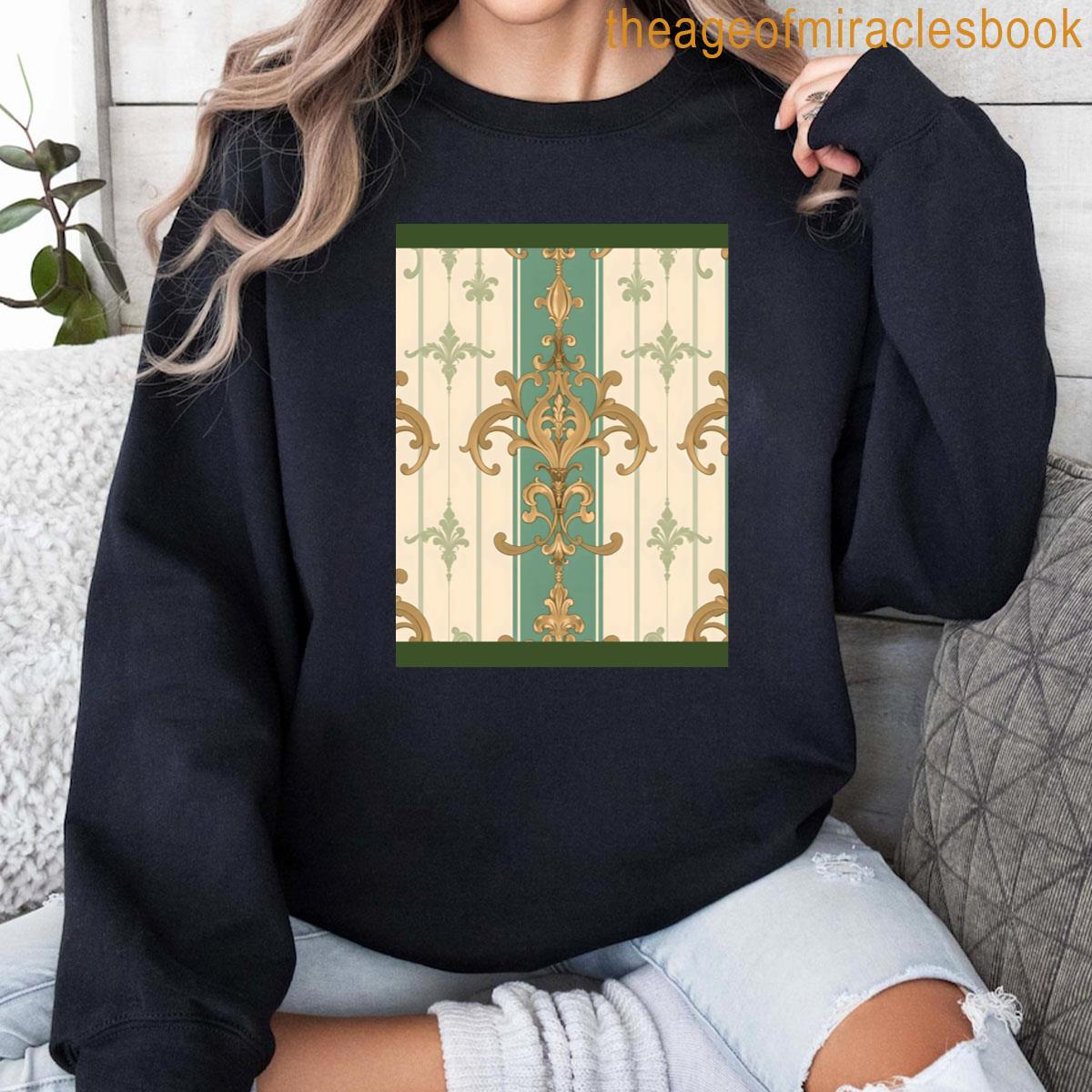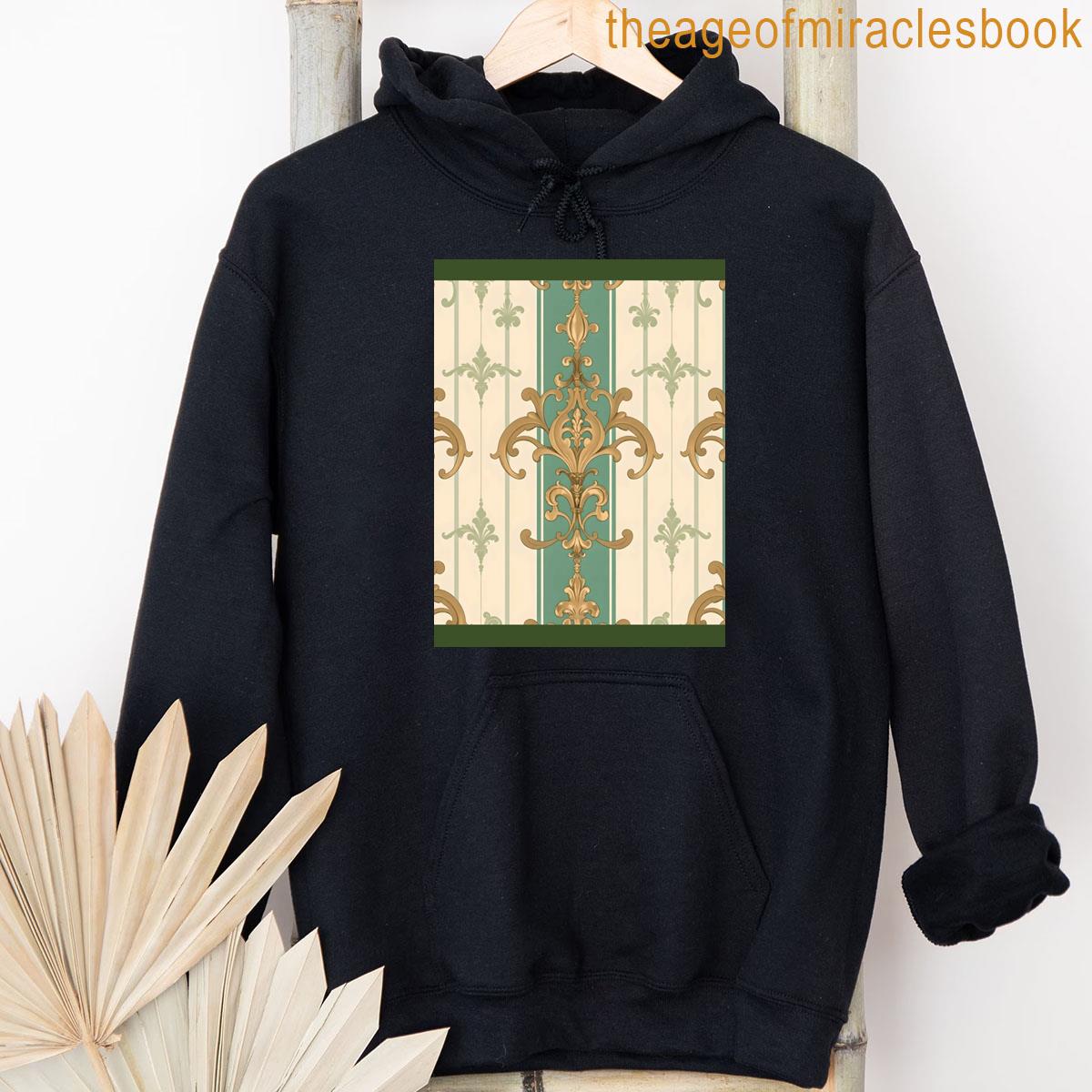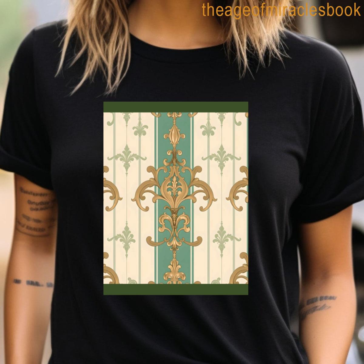 Matte Green Amp Beige Striped Gold Damask T-shirt