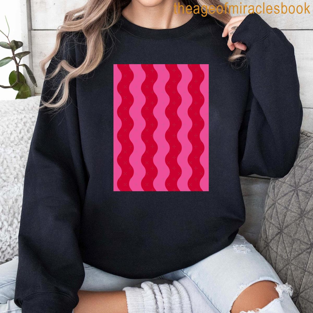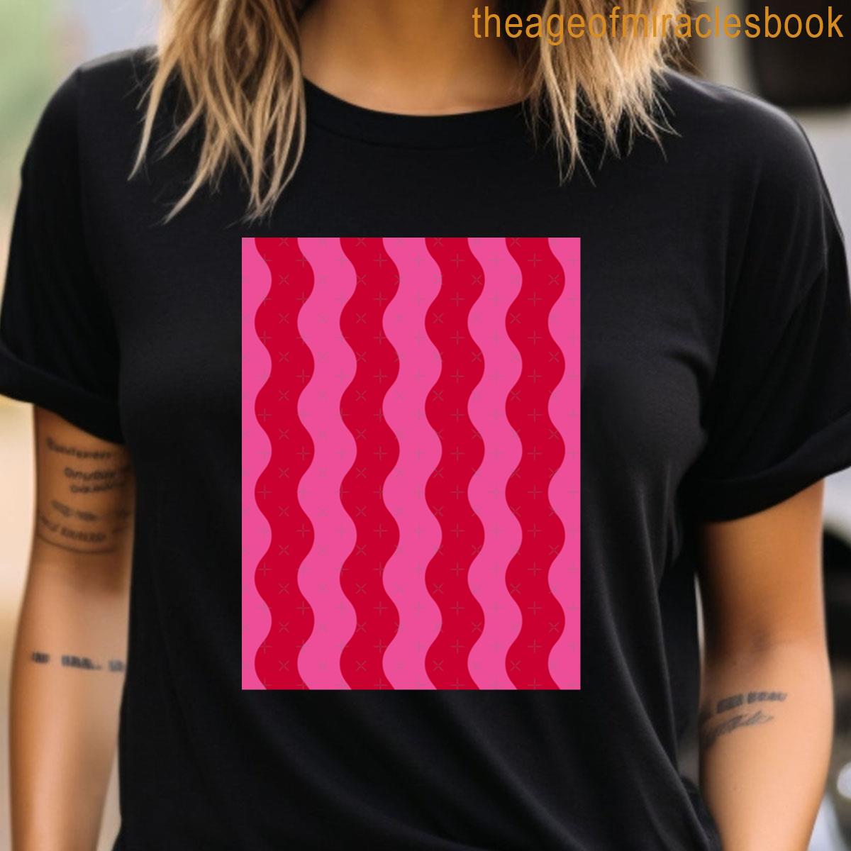 Red And Pink Candy Striped Waves Graphic T-shirt