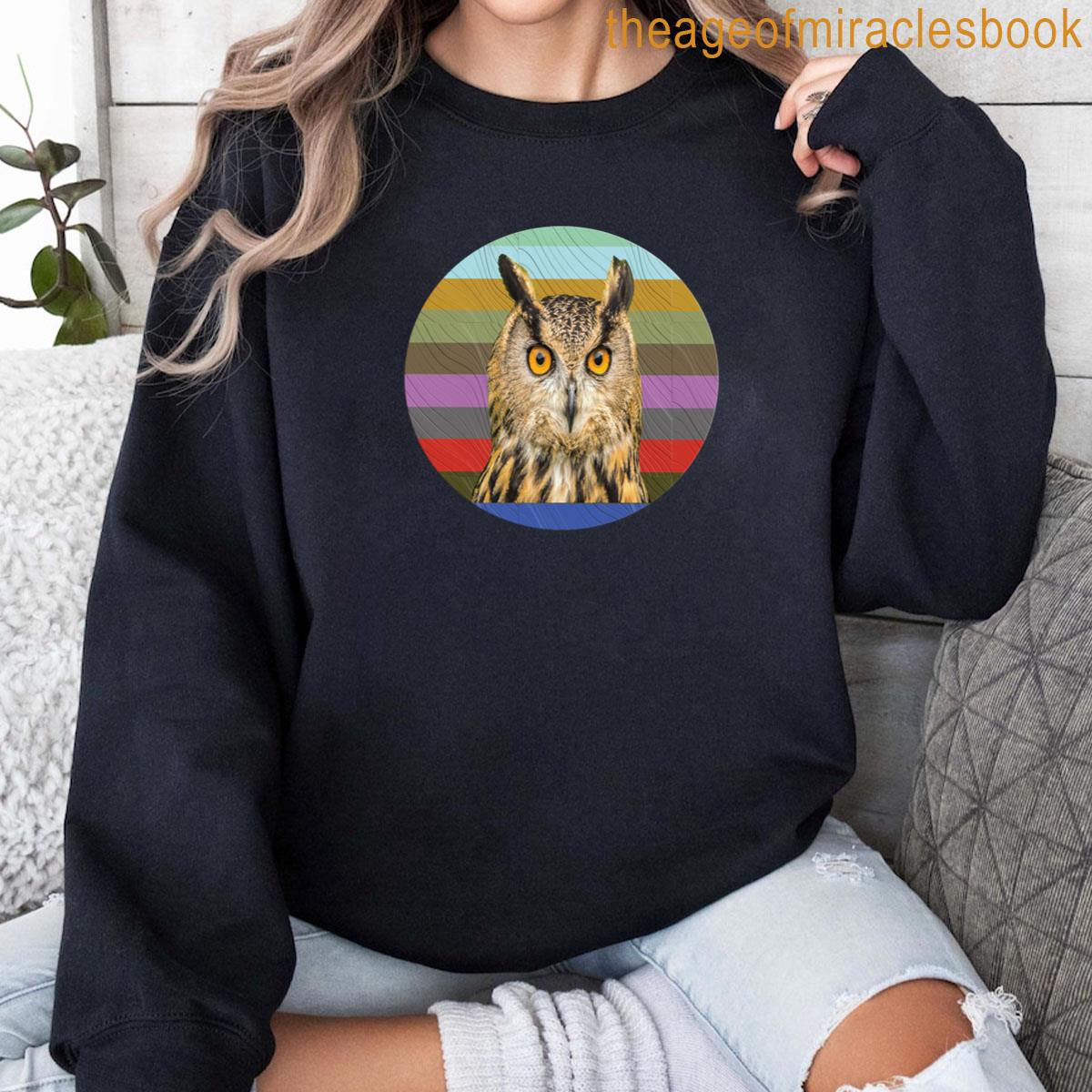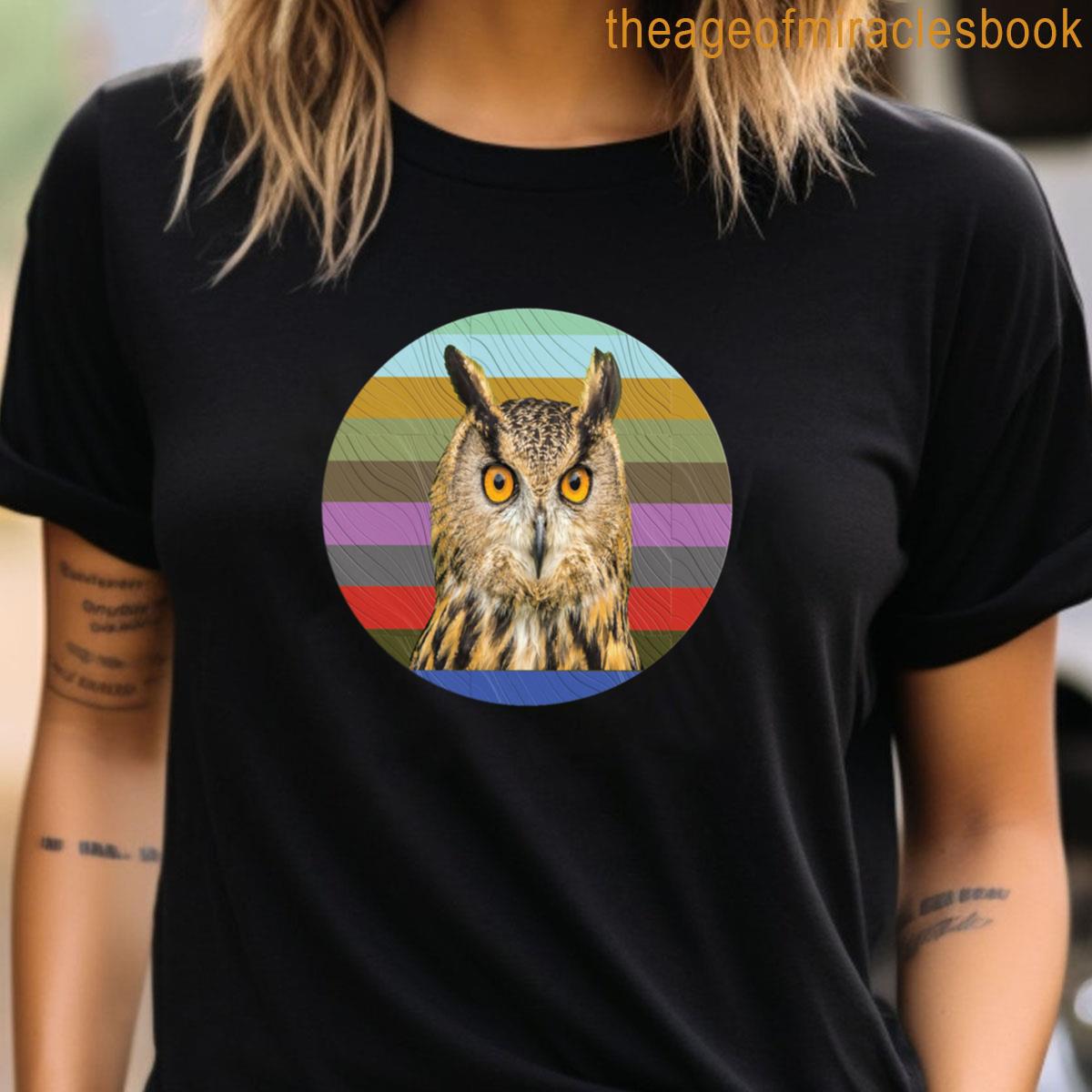 Vibrant Striped Textured Circle Owl T-shirt